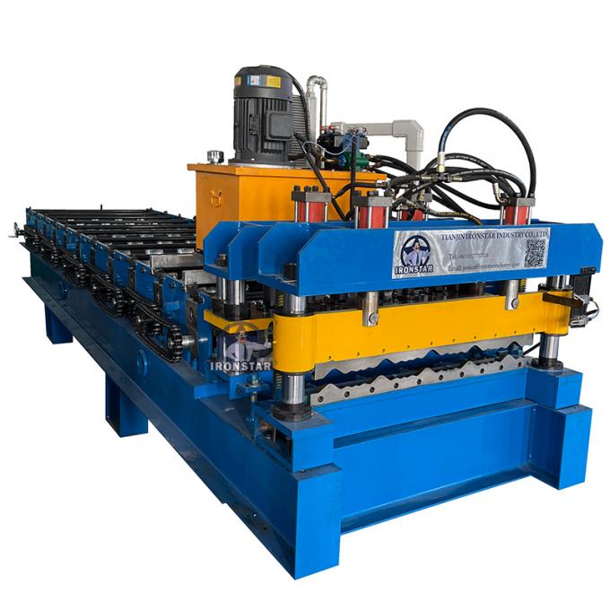 Το κεραμίδι που κατασκευάζει τα μηχανήματα να κυλήσουν τη διαμόρφωση της μηχανής δημοφιλούς πωλεί σε πολλές χώρες, κοινό κεραμίδι που κάνει το πάχος κυλίσματος μηχανημάτων από 0.3-0.6 χιλ., υλικό υλικό χρήσης PPGI (προβερνικωμένος γαλβανισμένος χάλυβας)